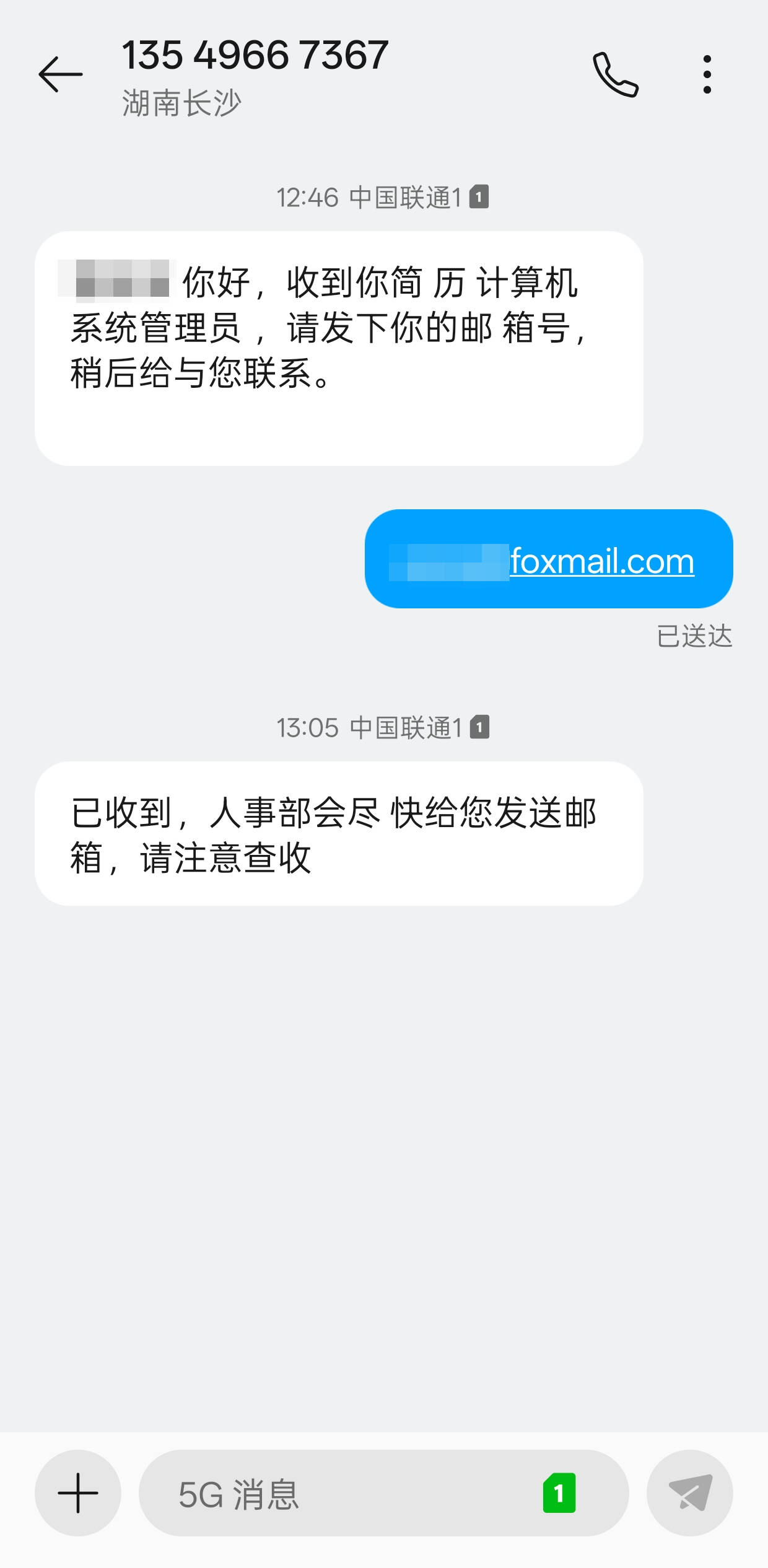 今天中午收到如下短信👇