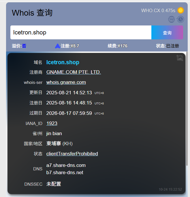 总感觉这个招聘和正常招聘不对头,一是邮件发来的公司与智联上不一致,二是要通过对方发来的腾讯文档要求下载小程序。我就更怀疑哪里有问题,冷静想了下然后看了下对方邮箱域名,立马警觉起来了,查了下域名 Whios ,果然……